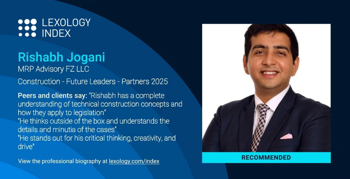 We are delighted to share that Rishabh Jogani, Partner – MRP Advisory, has been recognised in the Lexology Index – Future Leaders: Partners 2025