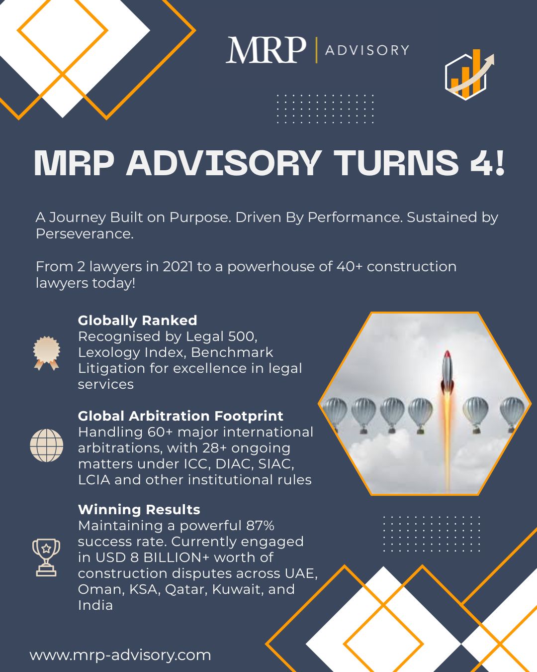 #MRPAdvisory #ArbitrationExperts #LegalMilestones #InternationalDisputes #TopLawFirm #MRPturns4