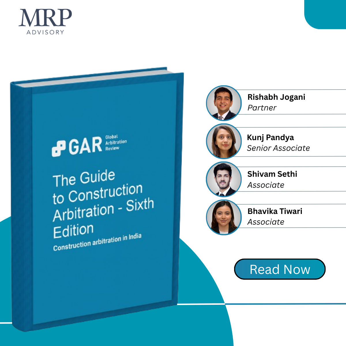 We are delighted to share that MRP Advisory has contributed a chapter on Construction Arbitration in India in the sixth edition of GAR’s Guide to Construction Arbitration, a leading global resource on construction and infrastructure disputes.