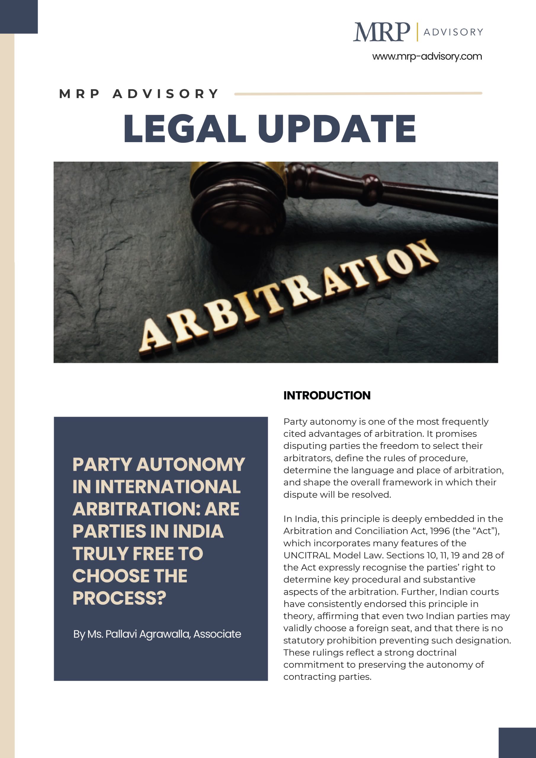#Arbitration #DisputeResolution #PartyAutonomy #InternationalArbitration #MRPAdvisory #LegalUpdate #ConstructionLaw #ArbitrationInsights