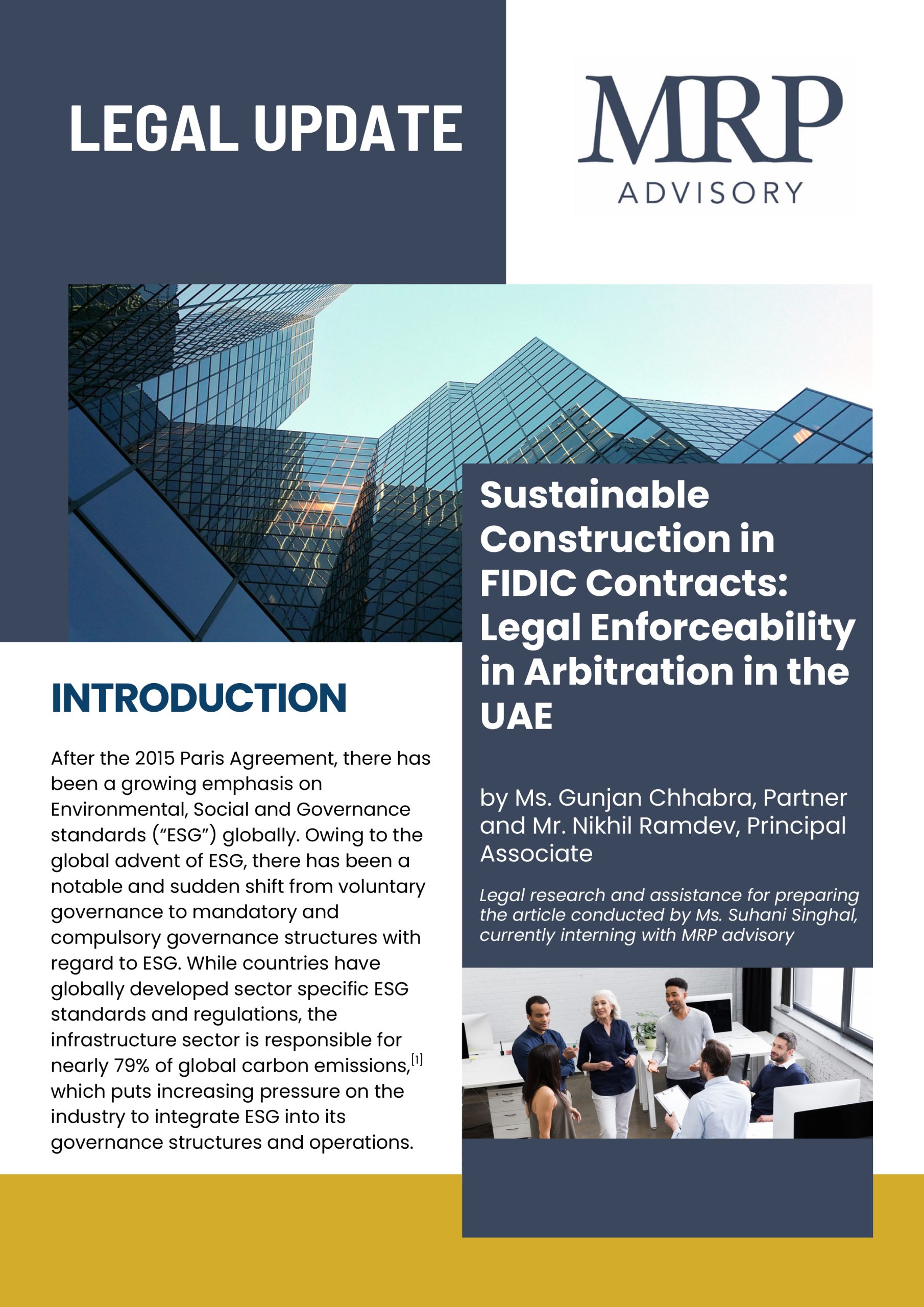 #MRPAdvisory #LegalUpdate #FIDIC #Sustainability #ESG #ConstructionLaw #Arbitration #UAE #GreenContracts #DisputeResolution #ClimateAction